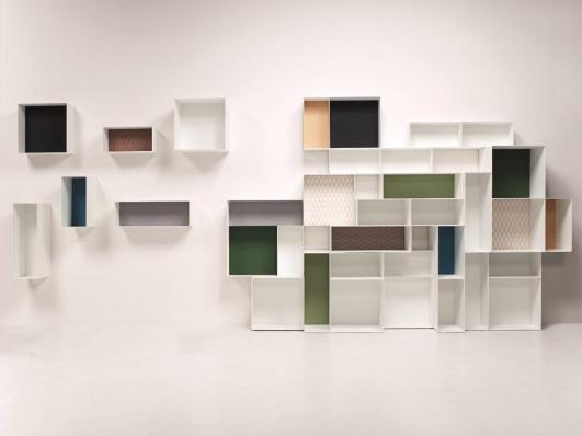 ALMA MODULES by Studio 63: Alma bookcase, introduced in 2011, becomes a modular bookcase too: in fact, three modules -small, medium and large - that can be hanged and arranged to one’s own taste, derive from the basic element.