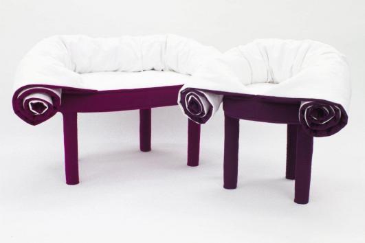 COLLERETTE by Les M: Collerette is a pouf that turns into a chair with blanket