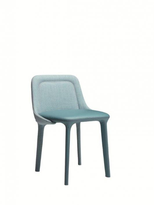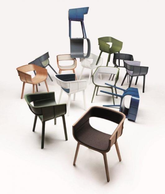 LEPEL CHAIR AND ARMCHAIR Designed by Luca Nichetto: This is a collection of padded chairs, fully upholstered in fabric or leather. two moulds for the backrest and the rear legs –for the two chair and armchair versions- and a single mould for the seat and the front legs.