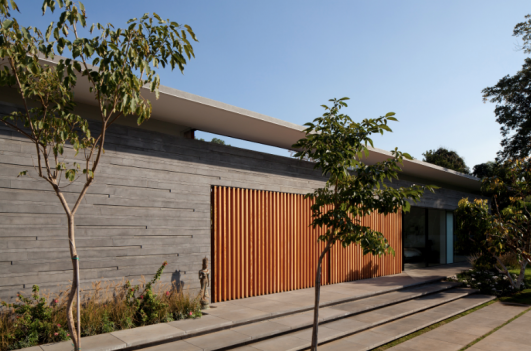 The structure itself is constructed from a series of spaces that are conceivably internal and conceivably external spaces. The entrance is framed with a wall of wooden slats which constitute what could be considered the initial boundary between the outside and the inside.