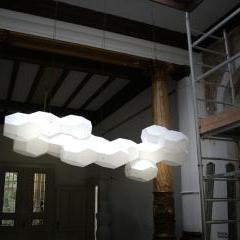 The design, consisting of single geometric modules attached to one another through magnetic contacts, is a prime example of a modular lighting system that really works.