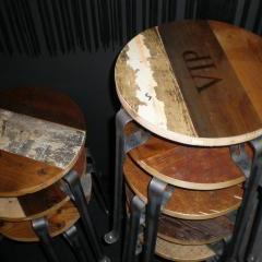 These stackable limited edition scrapwood stools have been constructed in accordance with the genuine qualities of strip metal allowing the material to act as the structural framework for the furniture.