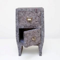 'Fossilized' is the first solo US exhibition of work by Jens Praet. The Belgium-born, Florence-based designer works with waste paper and resin, resulting in a material which has the strength of wood, which he then uses to create furniture pieces.