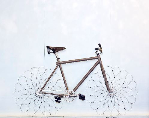 Ron Arad's bike continues Arad's tradition of challenging ones expectations. Instead of simply decorating a bike, Arad 're-designed the wheel'. A witty jesture that, we are sure, will fetch a fair amount of of bids when auctioned off.