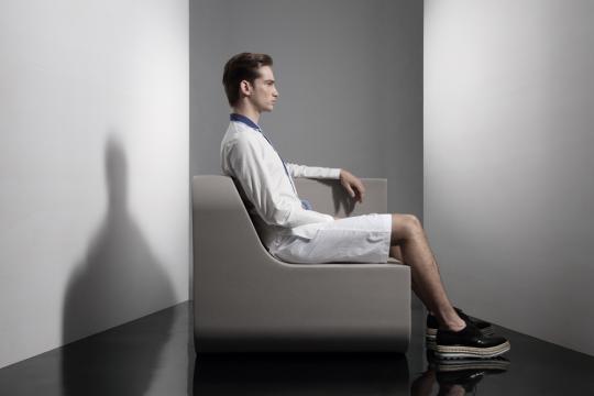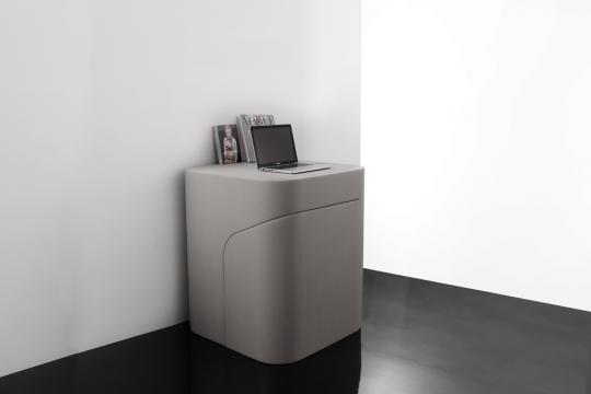 Splitting a raw rectangular foam block with only two L-shaped cut lines, Dual Cut is a transformable furniture piece that employs the simplest production processes true to the materials in use with minimal wastage.