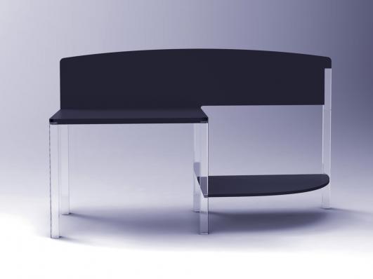 The intention of this chair is to create a holistic feel within a pocket of a room. The design is more directed to a home environment. The backrest form of this chair connects it to the accompanying stand that is meant to hold books or a plant.