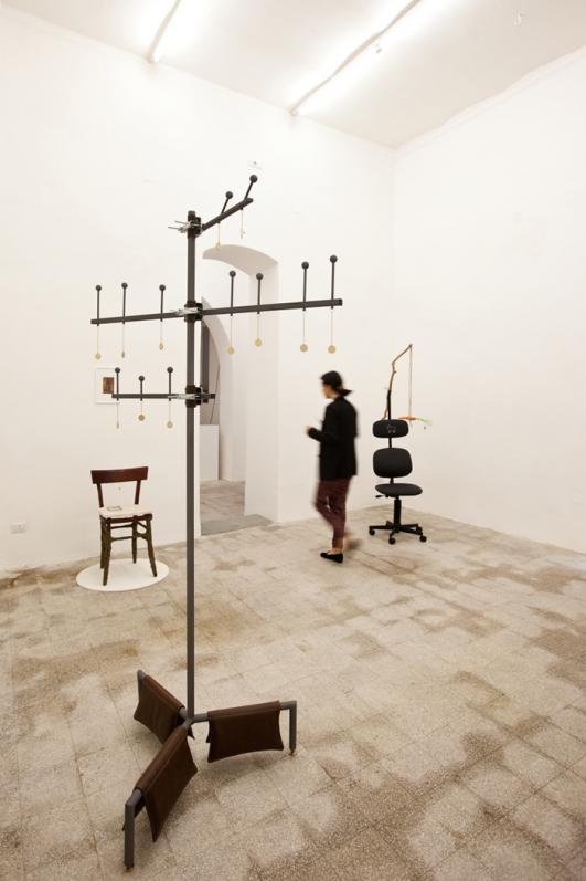 Francesco XXIII is a domestic basin of holy water that reminds us to live with more awareness of our daily rituals with water, it being a precious source for persons of every race and religion. The metaphor “Il bastone e la carota” inspired the elegant office chair Sheepper. The future is uncertain but can be predicted through the coat hanger Saturn Aureola. The 6th of November 2009 a chair was buried in the forest - three years later it has been brought to light and lives again in 6.11.2009 - 20.12.2012, a polyfunctional hybrid object. Angolare Paradiso is a tribute to the buttress, an architectural element used in gothic churches. Merrymaking at the table becomes a creative act in First Supper Project, a romantic itinerant project which converts dining companions to unaware food performers.