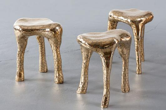 Unique Hex stool in brass. Designed and made by The Haas Brothers, Los Angeles, CA, 2012.