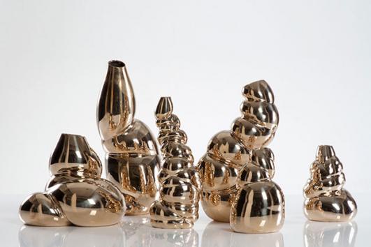 Unique Accretion vases in hand-thrown ceramic with porcelain slip. Designed and made by the Haas Brothers, Los Angeles, CA, 2013.