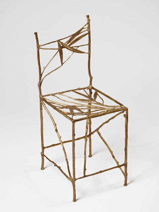 Drawing inspiration from flora and fauna, the Lalannes’ sculptures embody an eclectic style that references classical antiquity, surrealism and the Baroque. Among the most famous on show are François-Xavier’s playful animal sculptures, which all feature hidden compartments: a life-size rhinoceros doubles as a writing desk, and the bared chest of a gorilla guards a concealed safe (Rhinocrétaire, 2002, and Gorille de Sûreté II, 1984). Equally inventive is Claude’s Choupatte, très grand (2008), an oversized cabbage perched on surrealistic chicken’s legs and textured by verdigris.