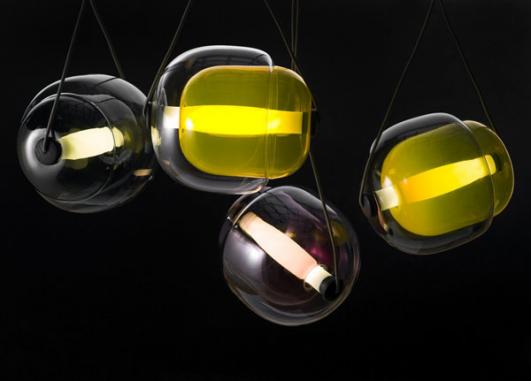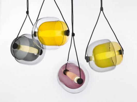 Capsula pendant light by upcoming designer Lucie Koldova for czech company Brokis is composed of two oval capsules of glass when external absorbs the internal and by permeating each other they complete compact form.