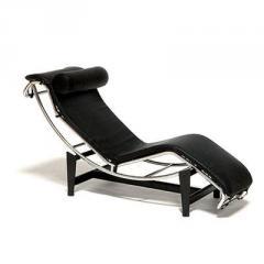 Chaise-longue with adjustable polished chrome plated or matte black enamel steel frame. Matte black enamel steel base.