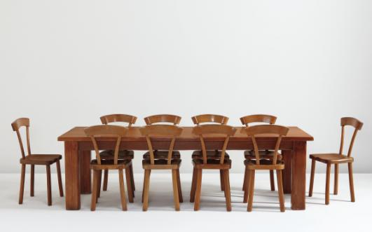 441 ALEXANDRE NOLL, Rare dining table and set of ten chairs, circa 1945, $905,000 / €657,560 / £555,010