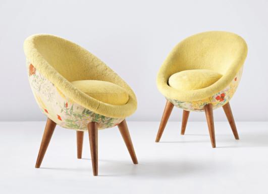 414 JEAN ROYÈRE, Pair of high "Œuf" chairs, circa 1953, $257,000 / €186,733 / £157,611