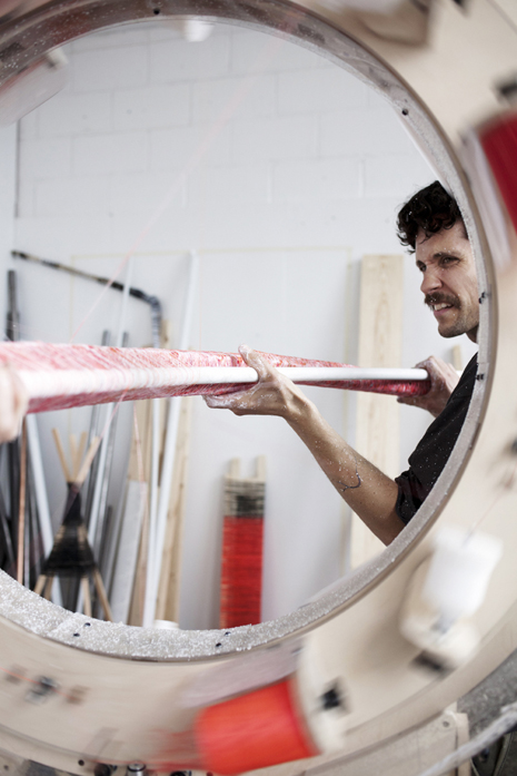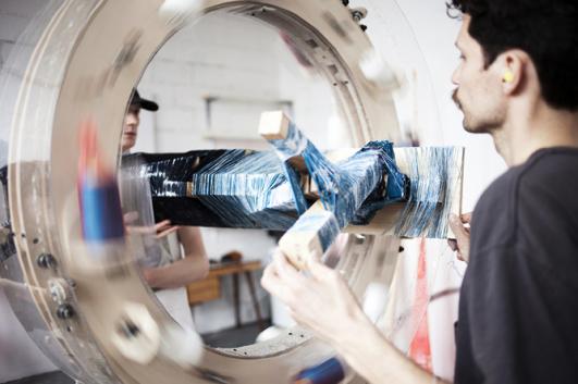 Ever since his successful collaboration with the gallery for Design Miami/Basel 2013, Alvarez has been devising a new body of work that celebrates his distinct and idiosyncratic design approach. With a background in cabinet making, interior architecture, craft and design, coupled with his inquisitive, playful mind and strong personality, Alvarez certainly has a diverse skill set upon which to build. Wrapper's Delight will consist of over twenty new pieces, all produced with Alvarez's Thread Wrapping Machine. For this new collection Alvarez has thrown open the opportunities afforded by the machine to incorporate paint and other medias to both bind the works together, while also injecting some chaos into his ordered craft.