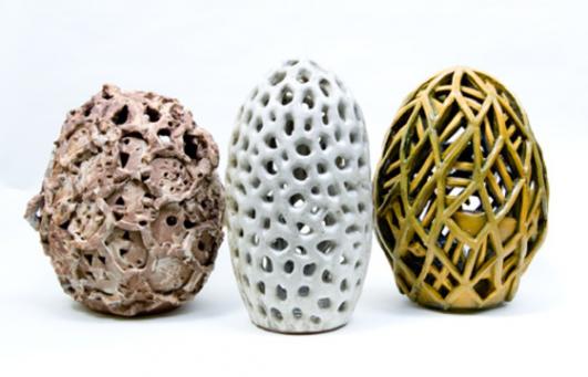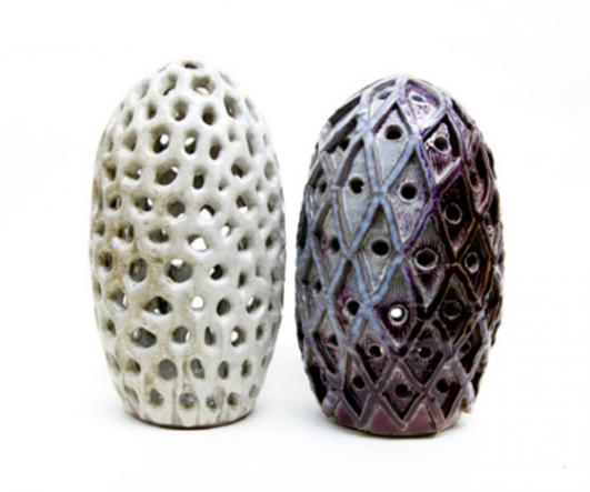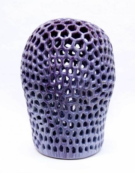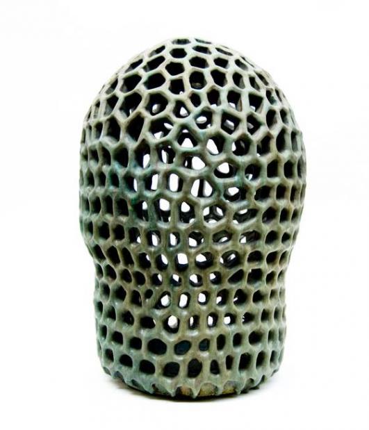 Created from inanimate clay, Merkel Hess’ Things begin their life on the wheel. Once the initial form is created, it is altered, carved and pierced, taking on characteristics that are both abstract and familiar. The pieces are then fired and glazed, undergoing a permanent transformation in the kiln that echoes Benjamin Grimm’s own transformation into The Thing.