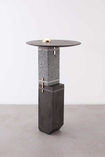 FORMAFANTASMA Big Pillar, 2014 Basalt, Occhio di pernice basalt, brass, textile