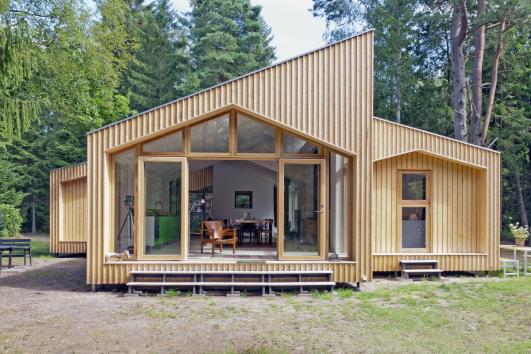 London-based Facit Homes designed this vacation house for a family in Copenhagen. To replace their clients’ rundown holiday lodge, the firm’s Danish partners Frederik Agdrup & Nicholas Bjørndal fabricated wood parts that you can quickly snap together by hand — the house was up in just six weeks.