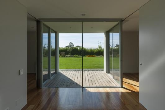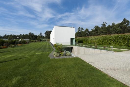 This family, a couple of physicians with a son who currently aspires to be a soccer player of FC Porto is reflected on the outdoors. On one side the typical grass of a soccer field with a goal, and on the other side, a transition to a crop field. This house describes the change of environment of the territory, the migration of families and their expectations for the future.