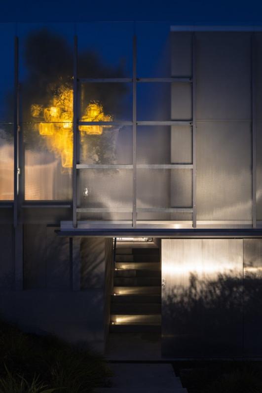 In this project called, Dune House, the house is designed to provide both protection and outlook, with spaces opening to a translucent glass screened courtyard and terrace overlooking the dunes of a popular beach.