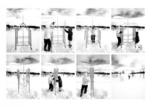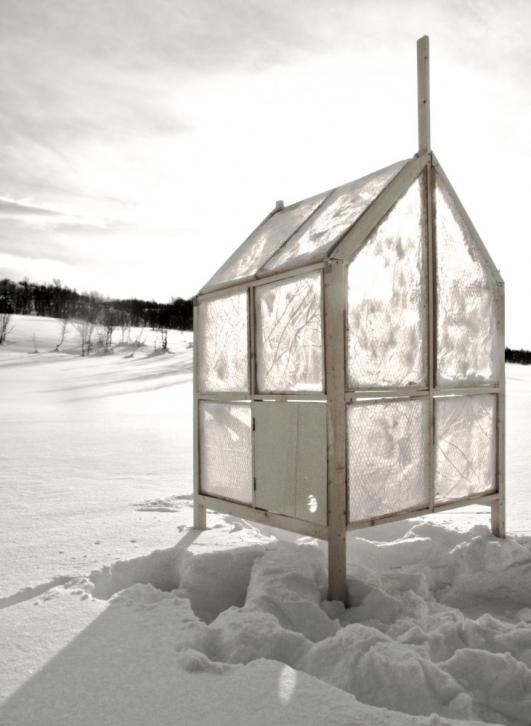 Designed by Gartnerfuglen Arkitekter, the small shelter for ice fishing, titled ‘Noun.1 Unavailability’, is built with and by nature. The timber frame is foldable for easy relocation and storage, and is effortlessly put up anywhere by one (or two small) persons in 30 seconds.