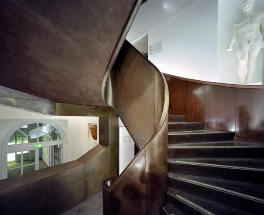 These two spaces are linked by a single path, almost a guideline. The very structure of the building contributes to this concept: it has two faces, overlooking both the courtyard and the garden, and a number of different levels depending on the orientation. Staircases and lifts have been included to enhance the flow of movement, and always enrich the setting. In the same way, service areas (reception, cloakrooms etc.) have been designed to be part of the staging. The architects believed it was important to make the practical aspects of the building resonate with the discovery of the works. The whole building, its entire architecture, serves the works.