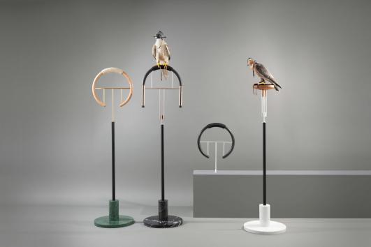 Italian Designer Massimo Faion created Posa Project, a new interpretation of falcon perches that comes directly from the original aesthetical criterions and combined with luxurious materials they become a precious object, a statement going beyond its functional value. It combines volumes and geometric forms adapted to precise technical requirements.