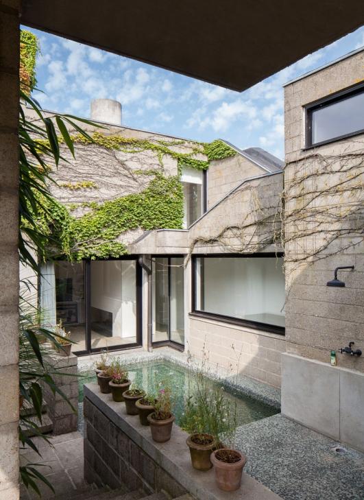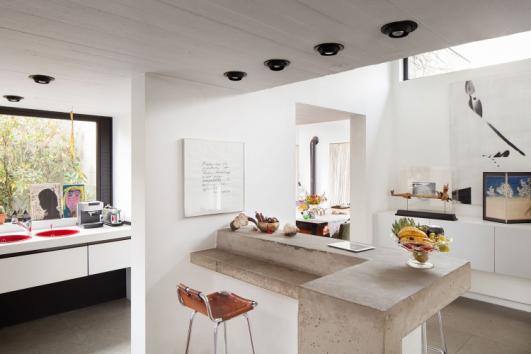 The renovation of this concrete beauty was made possible by Depoorter-Holdrinet Interior Architects. Photographer Frederik Vercruysse was able to capture the essence and brutalist charm of this home without disrupting its peace. The concrete accents coupled with the pastel home accents and greenery create an interesting contrast.
