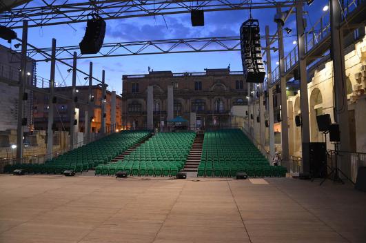 The key element of this redevelopment was opening the gate to the sky. The section of Pope Pius V Street that formerly ran immediately inside the gate at a raised level has been demolished and replaced by two wide, gently sloping flights of steps to each side of the new gate, inspired by the stairs that had framed the gate before the construction of Freedom Square. These stairs link the bastions of St James’s Cavalier and St John’s Cavalier to the lower level Republic Street. This rearrangement frees the fortifications from the arcade that formerly obscured them, allowing them to be seen to their full height and power.