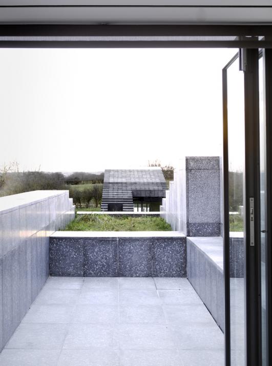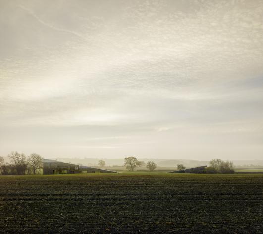 The site is a remote island, a strange, still, anomaly of wilderness within highly cultivated agricultural fields. The Flint House and Annex form two stepped, linear monoliths that appear pulled from the landscape as geological extrusions of infinite age, with the rough texture and rawness of their surroundings. The buildings are both viewing platforms and condensing lenses for the surrounding panorama.
