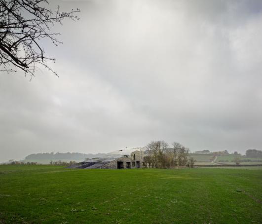 Flint is a quartz related to obsidian, and is found only in the chalk seam that extends from the south coast to Norfolk. Flint is an ancient material related to jasper, obsidian and onyx; a hard, cryptocrystalline form of quartz found in one geological seam in the UK, and in abundance on the surface of the ploughed fields surrounding the site. The architecture was generated from this Neolithic material, the geology and the immediate ecosystem.