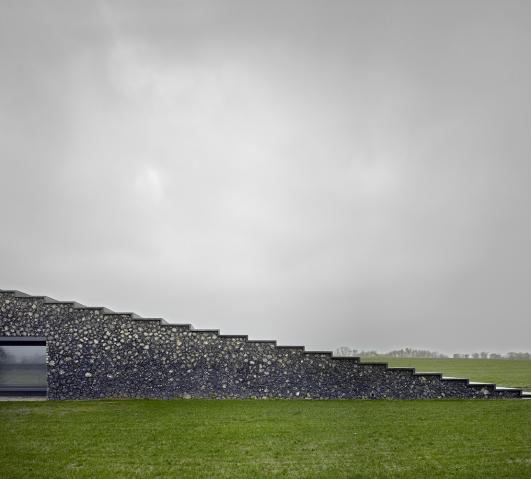 Skene Catling de la Peña were asked simply to respond to a site in the grounds of Waddesdon, a large Estate in Buckinghamshire, with a building initially intended for the curator of a new archive building. The Flint House consists of three bedrooms, a dining room, kitchen, library and study, with a self-contained annex studio, of 465 and 115 sqm respectively.