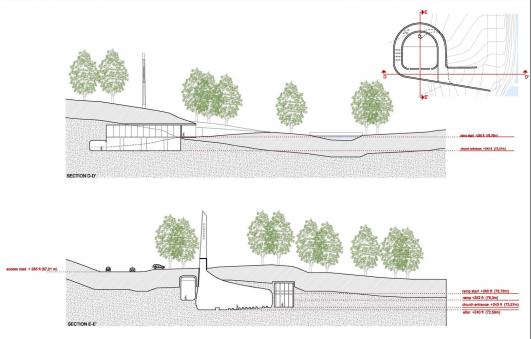 With the importance of natural materials and lighting in mind, the chapel and ramp will have no right angles. Correspondingly, “geological studies will be used to create an underground structure built only from the existing stone,” allowing “the space to be free from building technology.”