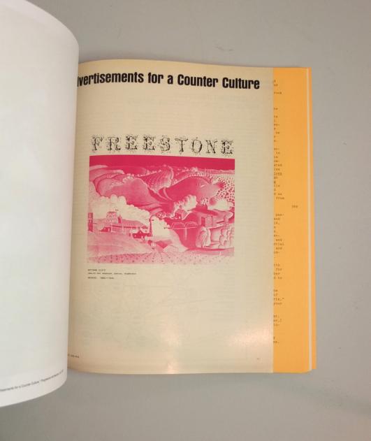 It includes the counter-design proposals of Victor Papanek and the anti-design polemics of Global Tools; the radical architectural visions of Archigram, Superstudio, Haus-Rucker-Co and ONYX; the installations of Ken Isaacs, Joan Hills, Mark Boyle, Hélio Oiticica and Neville D'Almeida; the experimental films of Jordan Belson, Bruce Conner and John Whitney; posters and prints by Emory Douglas, Corita Kent and Victor Moscoso; documentation of performances by the Diggers and the Cockettes; publications such as Oz and The Whole Earth Catalog; books by Marshall McLuhan and Buckminster Fuller; and much more.