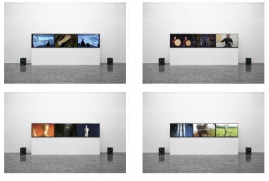 This exhibition will also include a recent video triptych, Action (2014), which suggests open and fluid connections between sound, image and text as video clips sourced from a range of online sources including home movies, advertising and promotional videos are rhythmically juxtaposed across the three screens. Guan Xiao comments on the work, “For me, rhythm means all the intersections of sense. It’s a way I understand the associations between things. It helps me to try and transfer action, see, listen, think about interactions and freely build a link between them.”