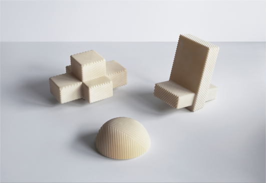 Etage Projects presents a number of furnishing pieces indicative of the process of pulverization, fusion and reanimation of veneers. The Curio distorts perceptions of hard and soft surfaces, blurring the borders between digitization, aesthetics and materiality.
