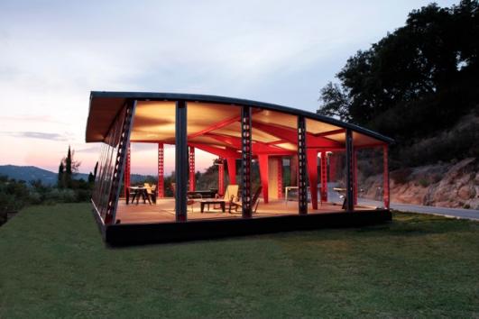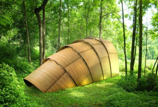 Another teahouse presented by Revolution Pavilions is Ron Arad's Armadillo Tea Canopy, which sits unobtrusively in its natural surrounding thanks to the natural materials used in its construction and provides an intimate and demountable place of reflection.