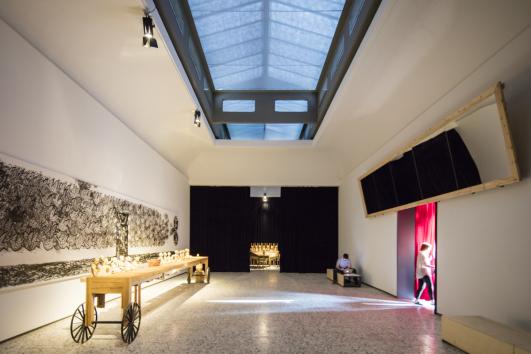 “Selfie Automaton” reflects on the characters and actions embodied by the puppets that are nothing but dispersed parts of our own and can be combined or split, in search of a self-portrait, be it of an architect or of anyone else.