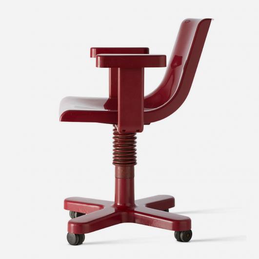 The exhibition illustrates this development with key works from the earlier periods: for example, the Califfo sofa (1964), the Kubirolo storage cabinets (1966-67), and pieces from the Mobili Grigi furniture series (1970) for Poltronova – or with rare objects like the armchair Tappeto Volante (1974), a manifestation of the seemingly weightless connection Sottsass forged between Pop culture and hippie-era spirituality. Other objects, such as Seggiolina da Pranzo (1979-80) for Alchimia and many spectacular Memphis designs, demonstrate how Sottsass finally arrived at a personal and unique style.