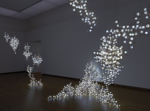 The changing relationships between man, nature and technology are the focus of Studio Drift’s work. Their first project, Fragile Future, now an iconic series of light sculptures of dandelion heads individually applied to LED lights, brought the duo international renown. Over the years, the work evolved into a system composed of modules, and can be combined in various configurations. Placing and gluing the dandelion seeds to the LEDs is an extremely labor-intensive process and can be seen as a form of ‘slow design’. This type of exacting craftsmanship stands in marked contrast with today’s mass production processes. Fragile Future offers a utopian glimpse into our future, in which the forces of two seemingly irreconcilable worlds unite in a bid to survive. Like almost all work by Studio Drift, Fragile Future can be adapted to create a unique composition for any space. Specially for the Stedelijk, the studio will produce the largest-ever installation of Fragile Future, formed around Fragile Future Chandelier 3.5.