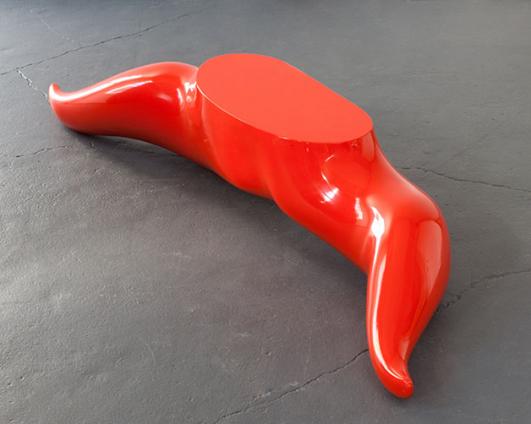 "Leotard" table in red gel-coated fiberglass-reinforced plastic, made in an edition of 6. Originally designed in 1968 by Wendell Castle, Rochester, New York. Signed "2nd Ed. 1/6, 1969."