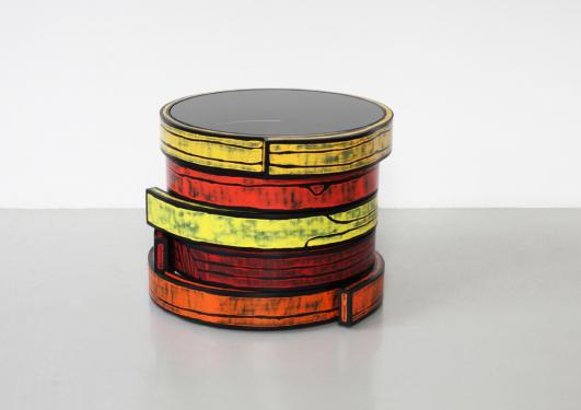 Galerie VIVID Edition of 8 + 2 A.P. in four colour options and two size options, Printed birch wood and colored glass, 73 x 73 x 54 cm; 28.7 x 28.7 x 21.3 inch / 51 x 51 x 65 cm; 25.6 x 25.6 x 21.3 inch