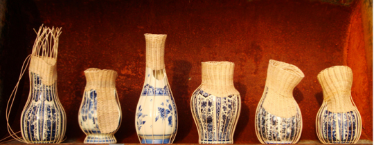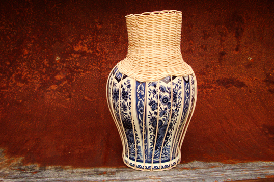 By combining the remnants of broken Delfsblue vases with Dutch basketry, Haulbergen provides an elegant solution, elevating the often neglected art of basketry while giving new life to the discarded work.
