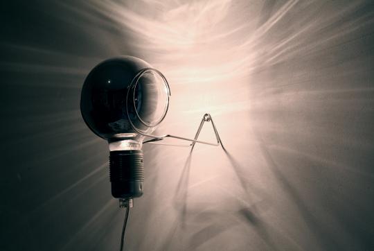The originality of this wall light lies in its simplicity. Its construction is particularly ingenious: the ‘Plic' is made of a round bulb equipped with a lateral reflector and electronic dimmer.