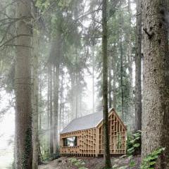 Raw, minimalist and modest, Adolf Bereuter‘s latest project is nestled deep in the woods in Wolfurt. The cabin is designed to tread lightly on the land and its sculptural form relies on both the structural and aesthetic integrity of the timber.